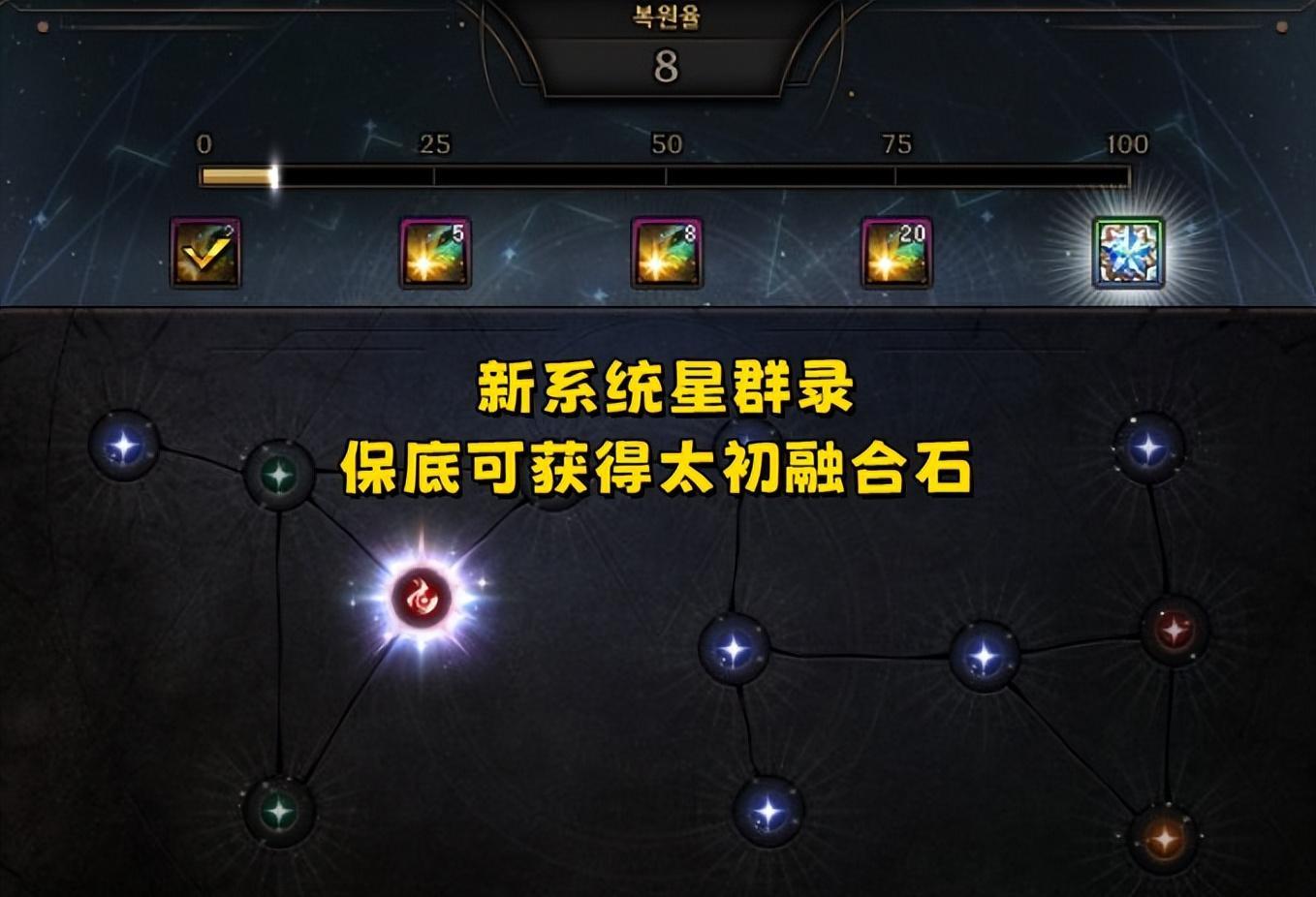 除此外還有一個新系統“星羣錄”,修復率達到100%時可以獲得“太初融合石”,算是一個保底系統。