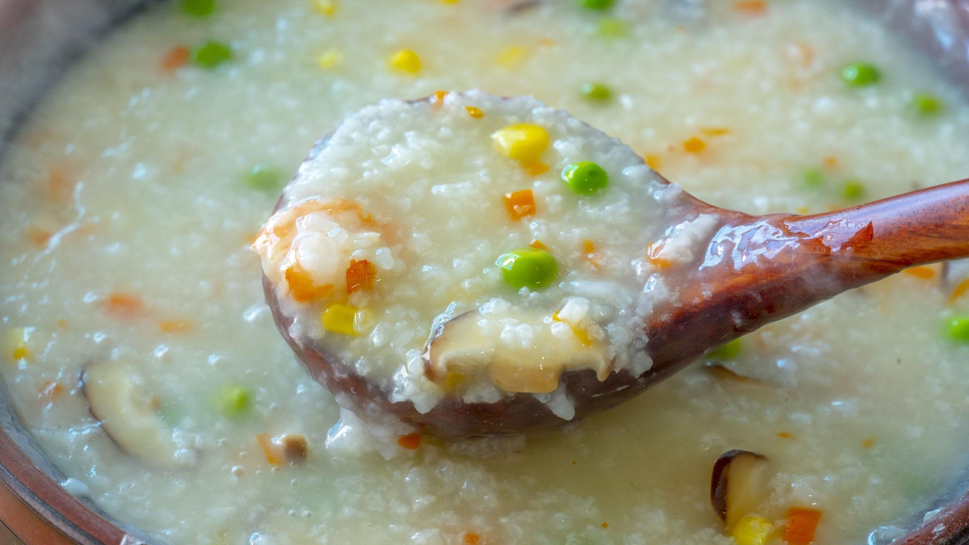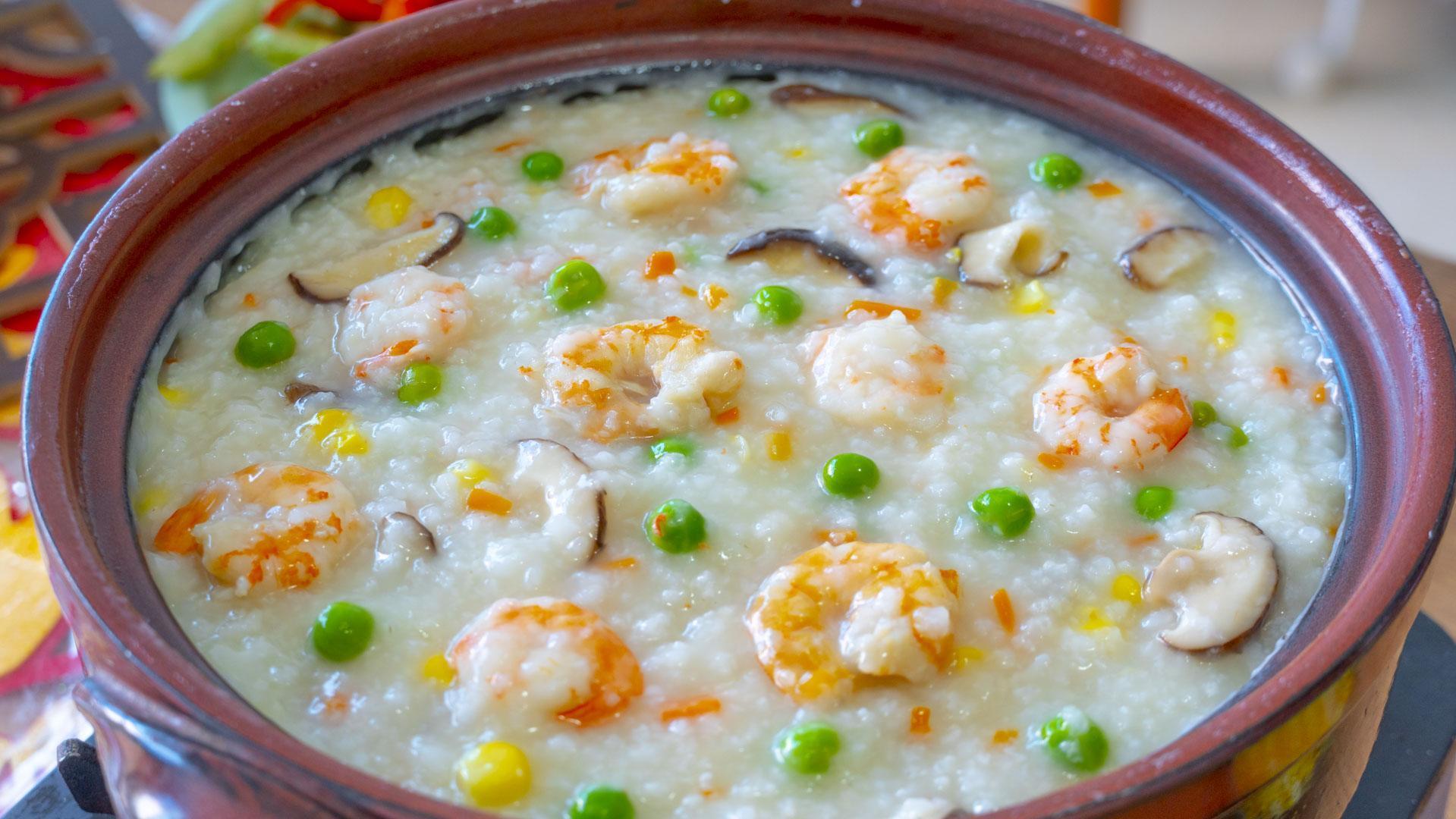 香噴噴的蝦仁豌豆粥就煮好了,簡單好喫,營養味美。