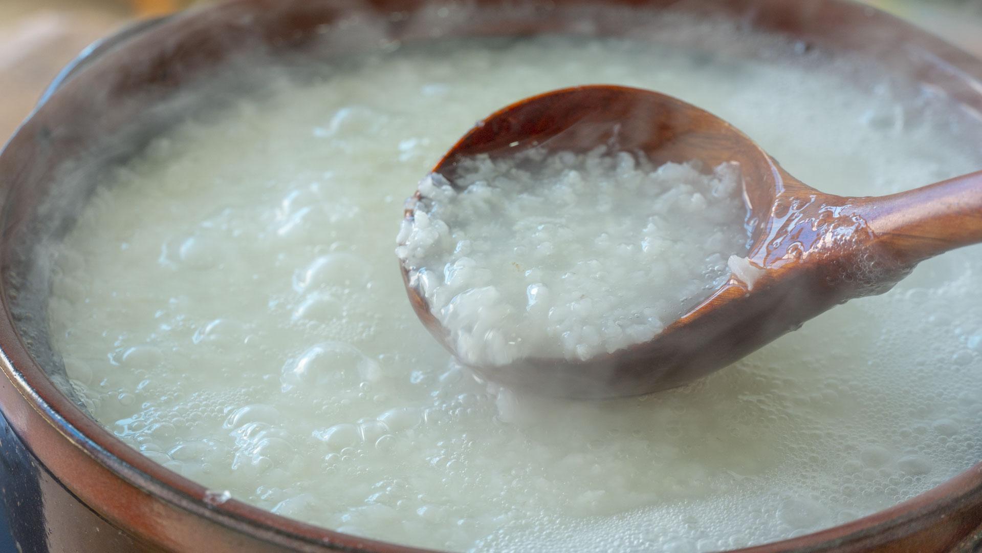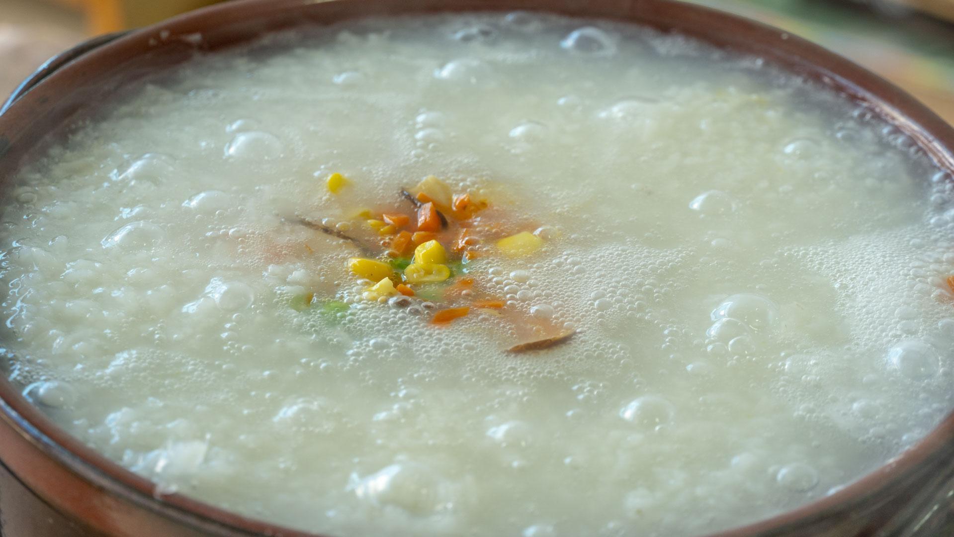 6、大米一小碗,淘洗乾淨後倒入砂鍋,加清水大火煮開,沸騰後轉小火慢煮30分鐘。