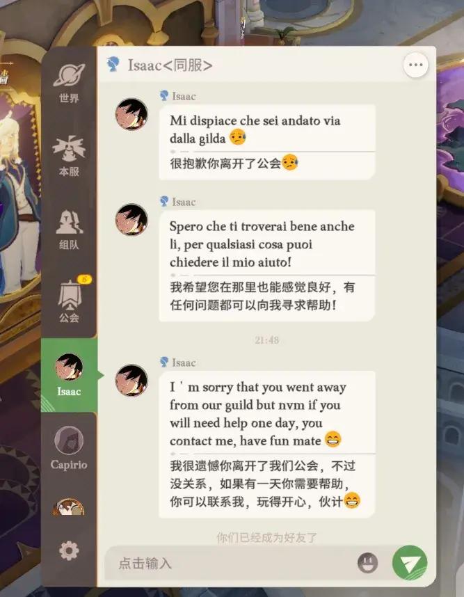 後來我找到一家中文公會收留,也沒說話就離會了。再上線的時候,之前的會長給我發了一長串消息,說“有問題還可以找我”,言辭之間不乏挽留——而我其實不是什麼高戰力玩家。