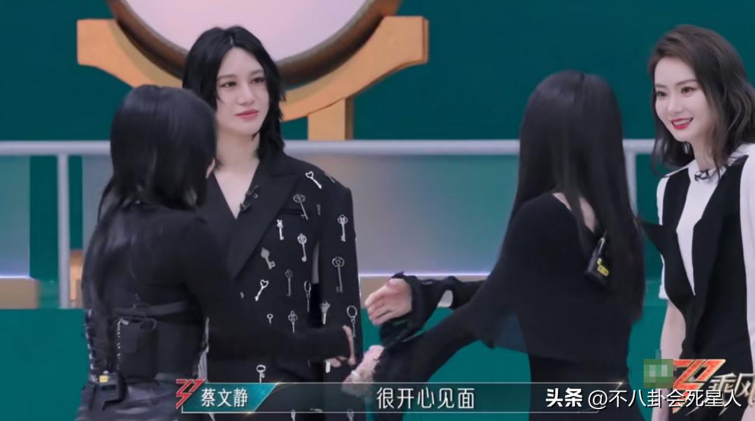 其實在這種“羣像”場合中,更多也是看個人發揮吧。比如像蔡文靜就很能“來事”,一出場就很主動跟其他姐姐找話題,先是跟尚雯婕聊之前一起拍戲的事情。