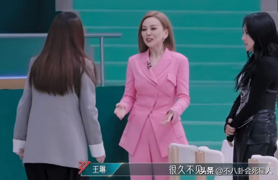 王琳也是主動伸手似乎想和郭碧婷擁抱,但郭碧婷依然沒有往前一步的意思,最後大家只能乖乖坐下。