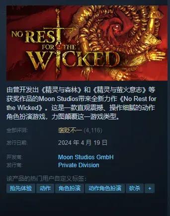 遊戲《奧日與黑暗森林》的開發者月亮工作室,今天凌晨在Steam上線了他們備受期待的新作《惡意不息》搶先體驗版,目前遊戲處於折扣中,國區售價125元。