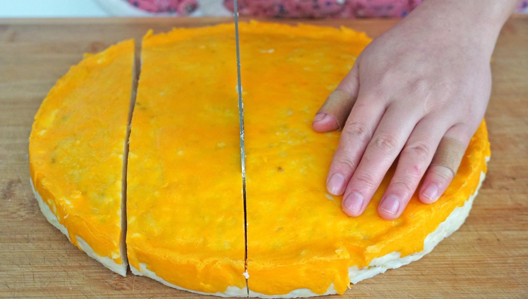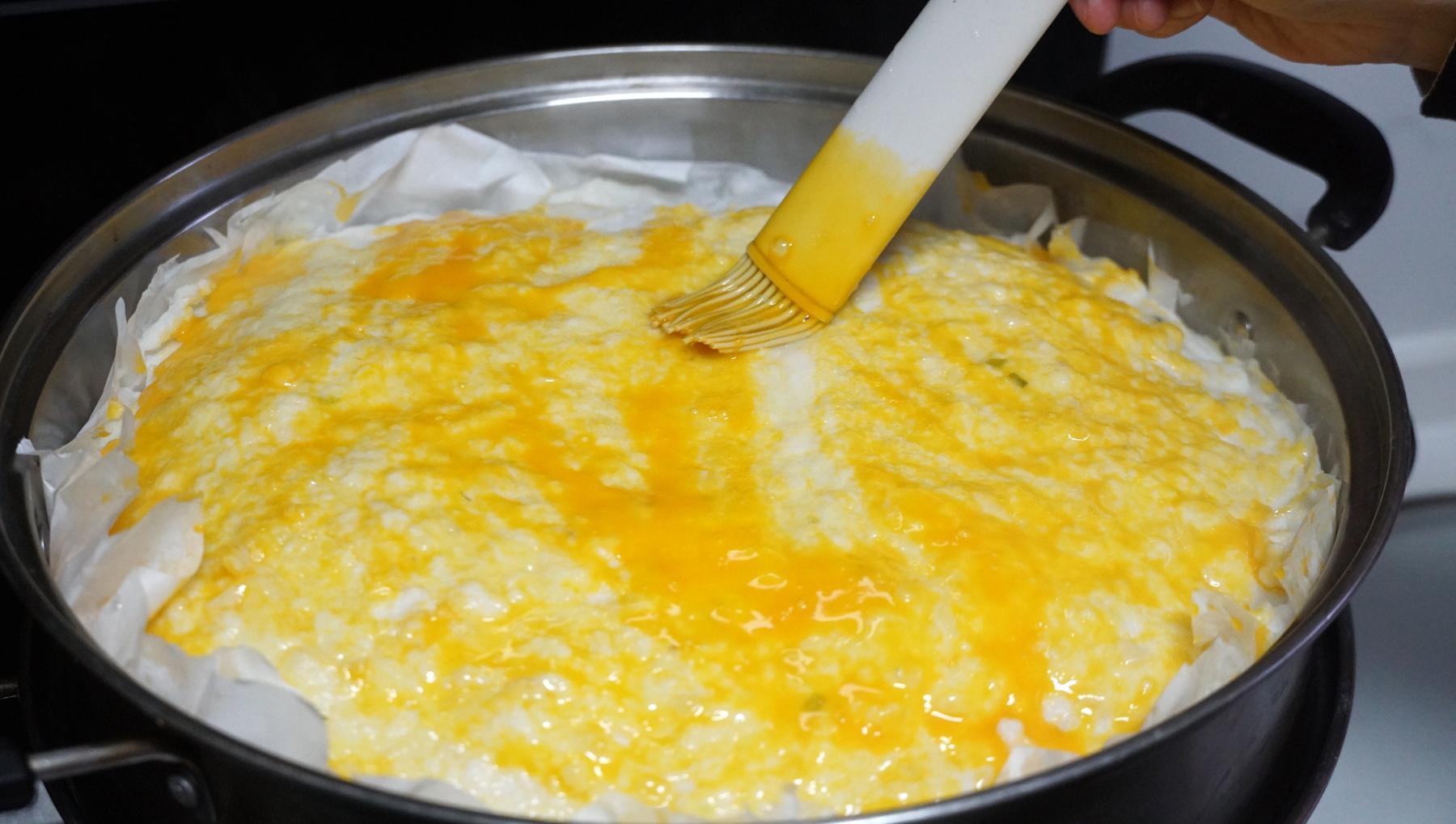 11、開蓋再抹上一層蛋黃液,繼續再蒸5分鐘,我們的魚糕就做好了。稍微放冷哈了再取出來,切成小塊塊就可以了。