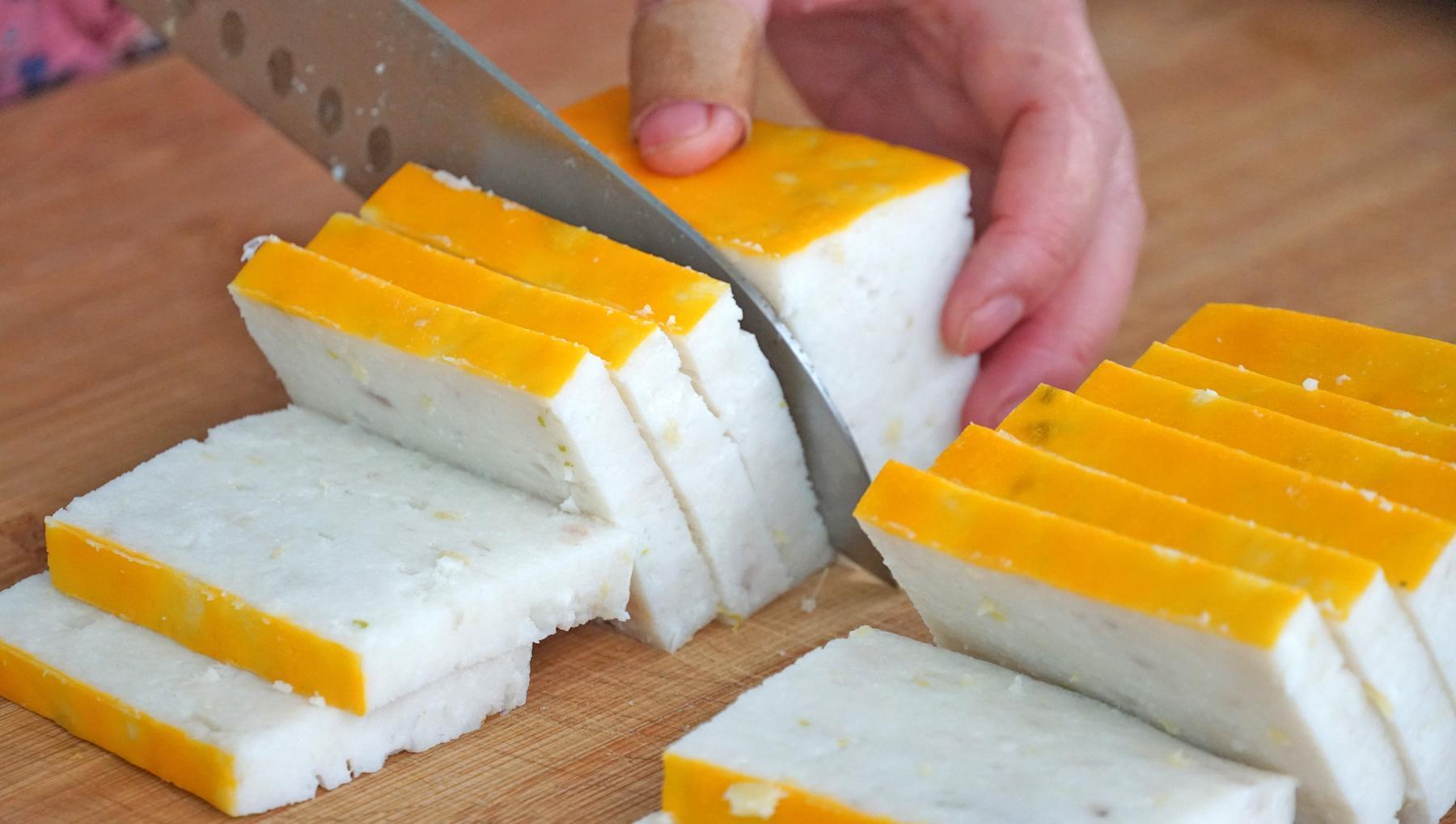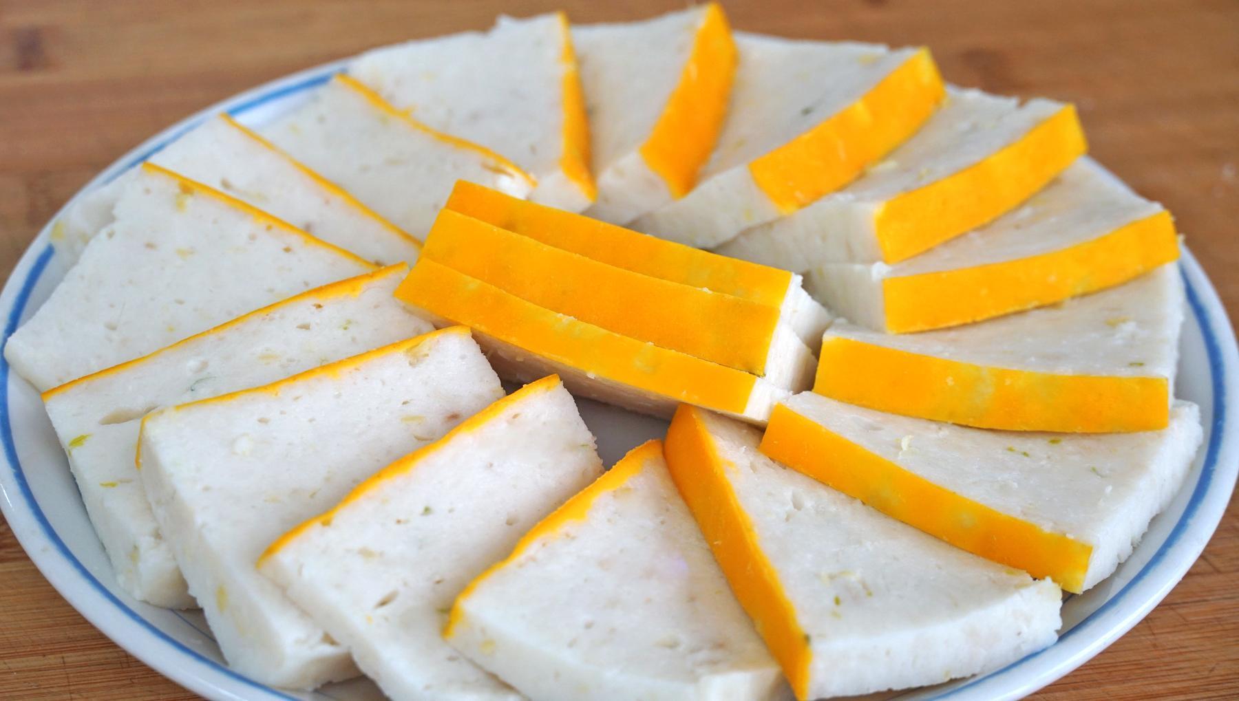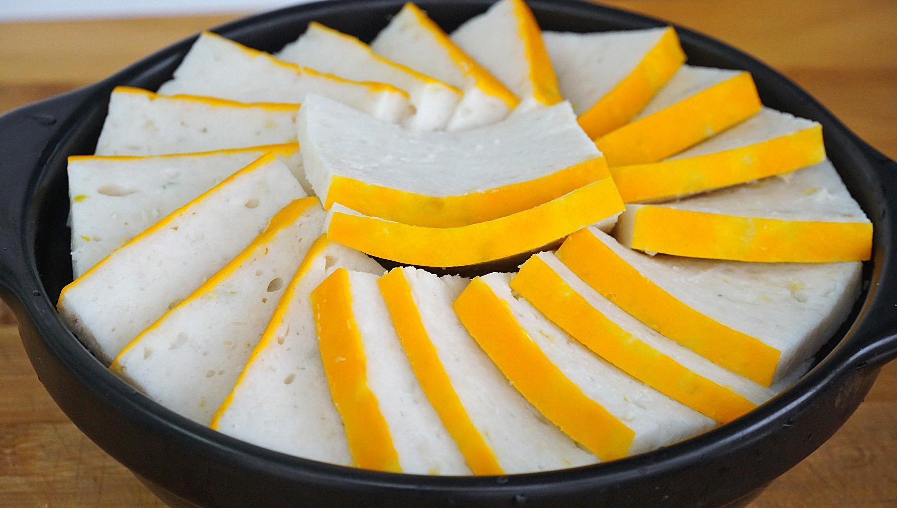7、我們平常喫的時候就是簡單一蒸,再炒個“帽子”蓋一下,香噴噴的魚糕就做好了。