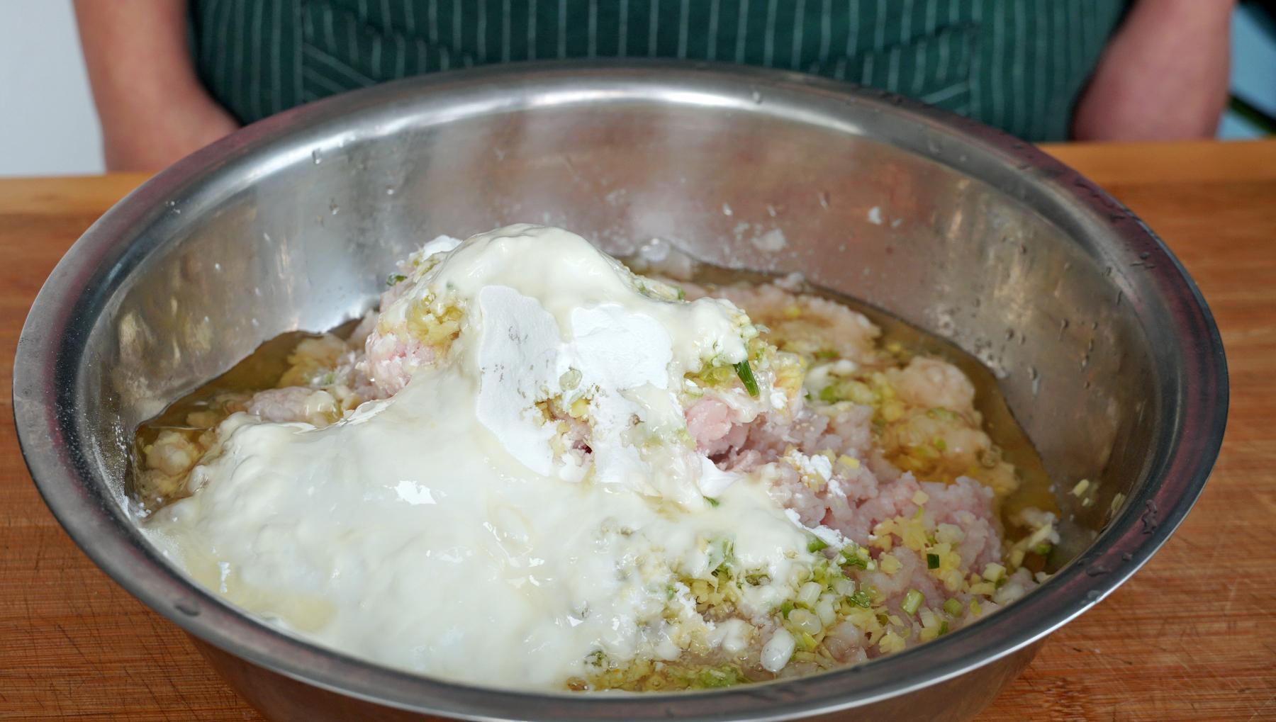7、調味:肥肉250克 、生薑60克 、蔥白20克 、鹽 38克 、雞精15克 、生粉75克 、蛋清8個。
