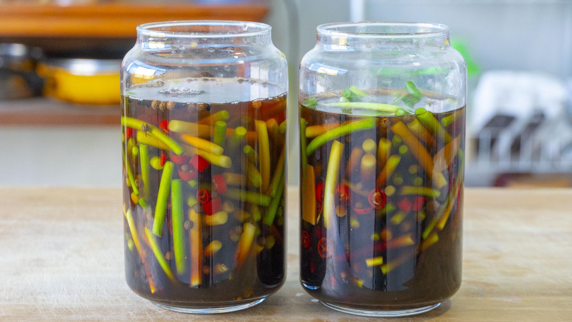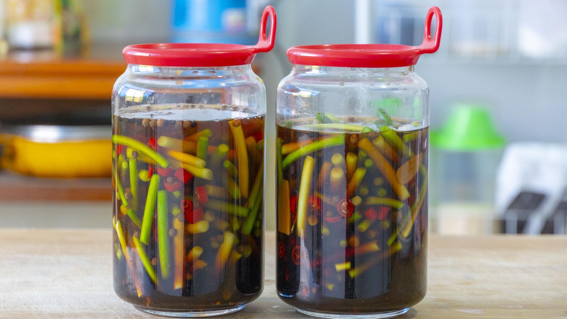 8、再倒入晾涼的醬汁,蓋上蓋子醃製一天一夜就可以開喫了。脆嫩開胃,越喫越香!