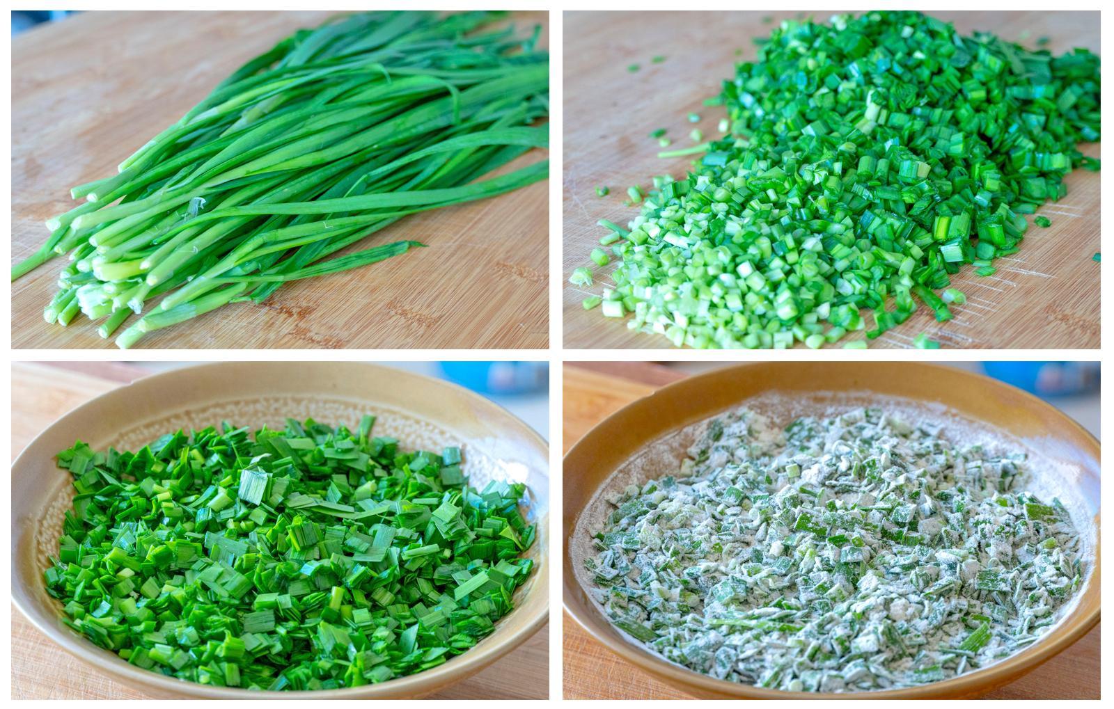 1、韭菜先加水清洗乾淨,然後撈出來控一控水分後切細一點,切成韭菜末就行,切好後裝入碗裏。