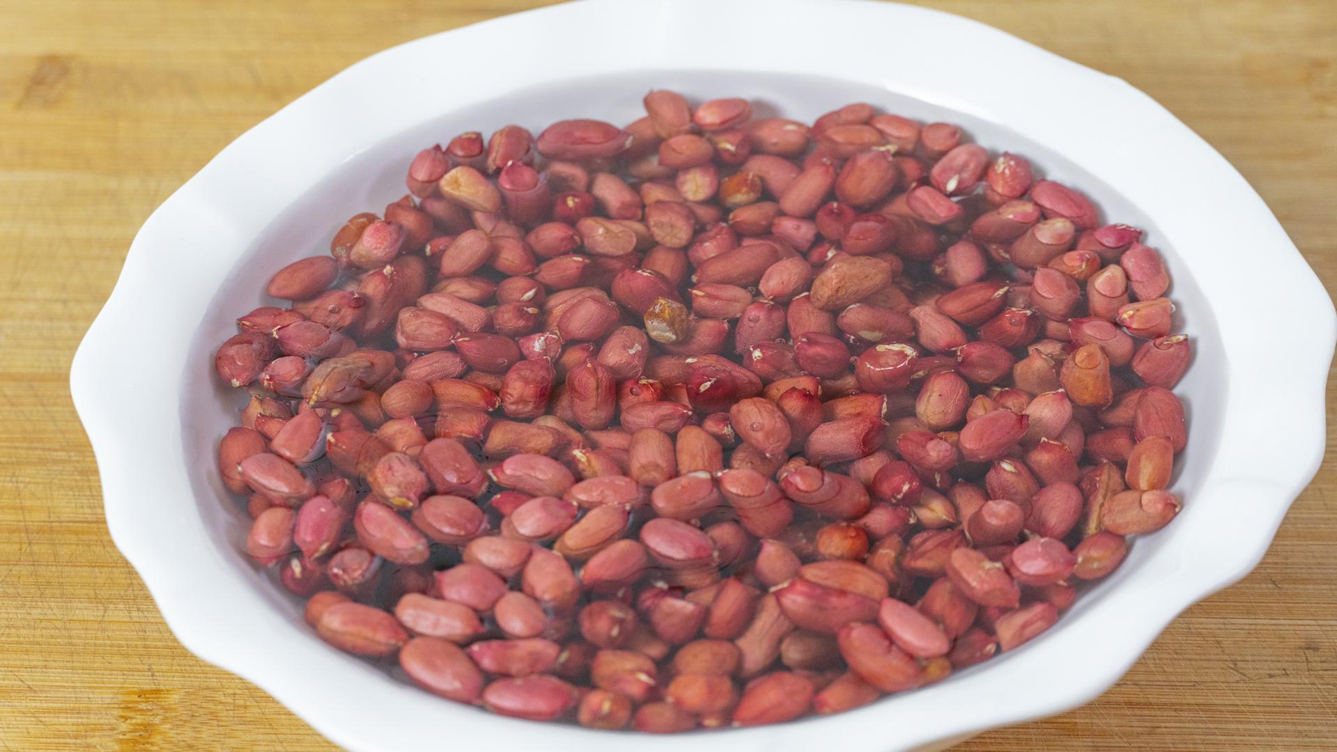 1、紅皮花生水洗一下表面的灰塵,提前泡2個小時備用。