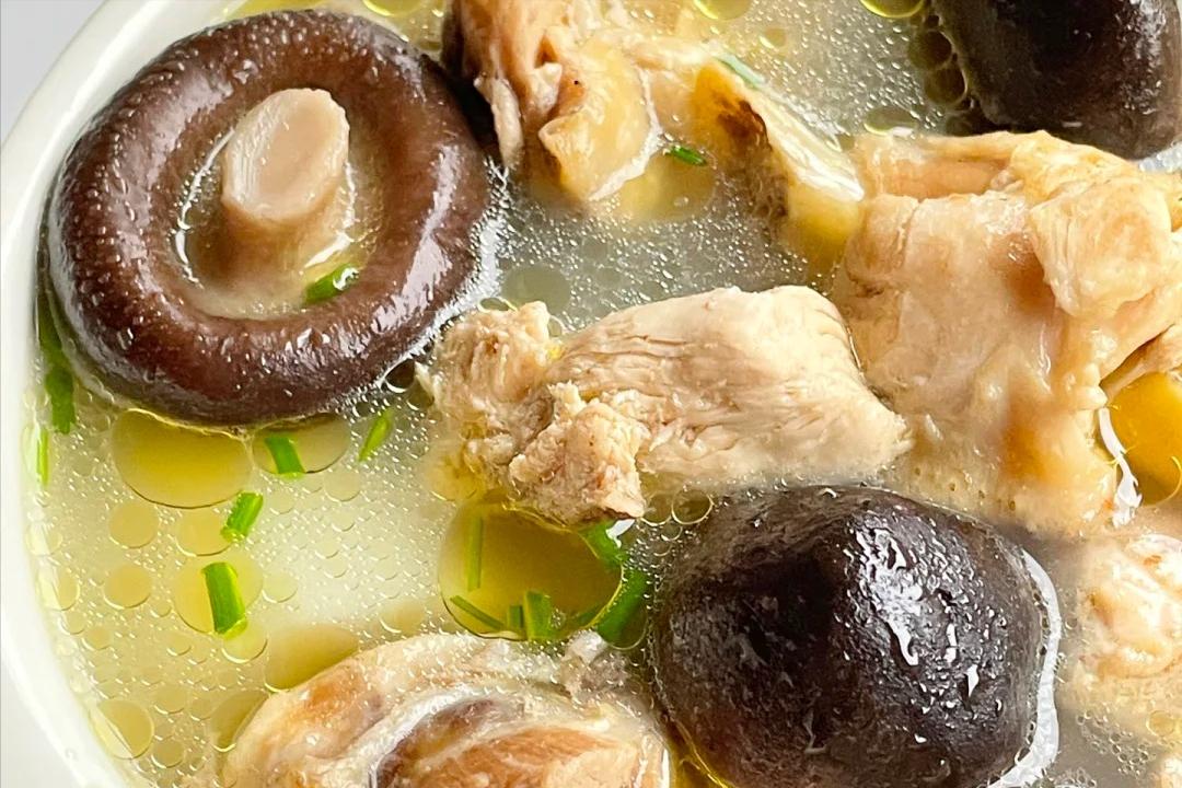 3、放入燉鍋中加入生薑片蔥段和香菇,加入清水後蓋上蓋子大火燒開後轉小火燉1.5小時。