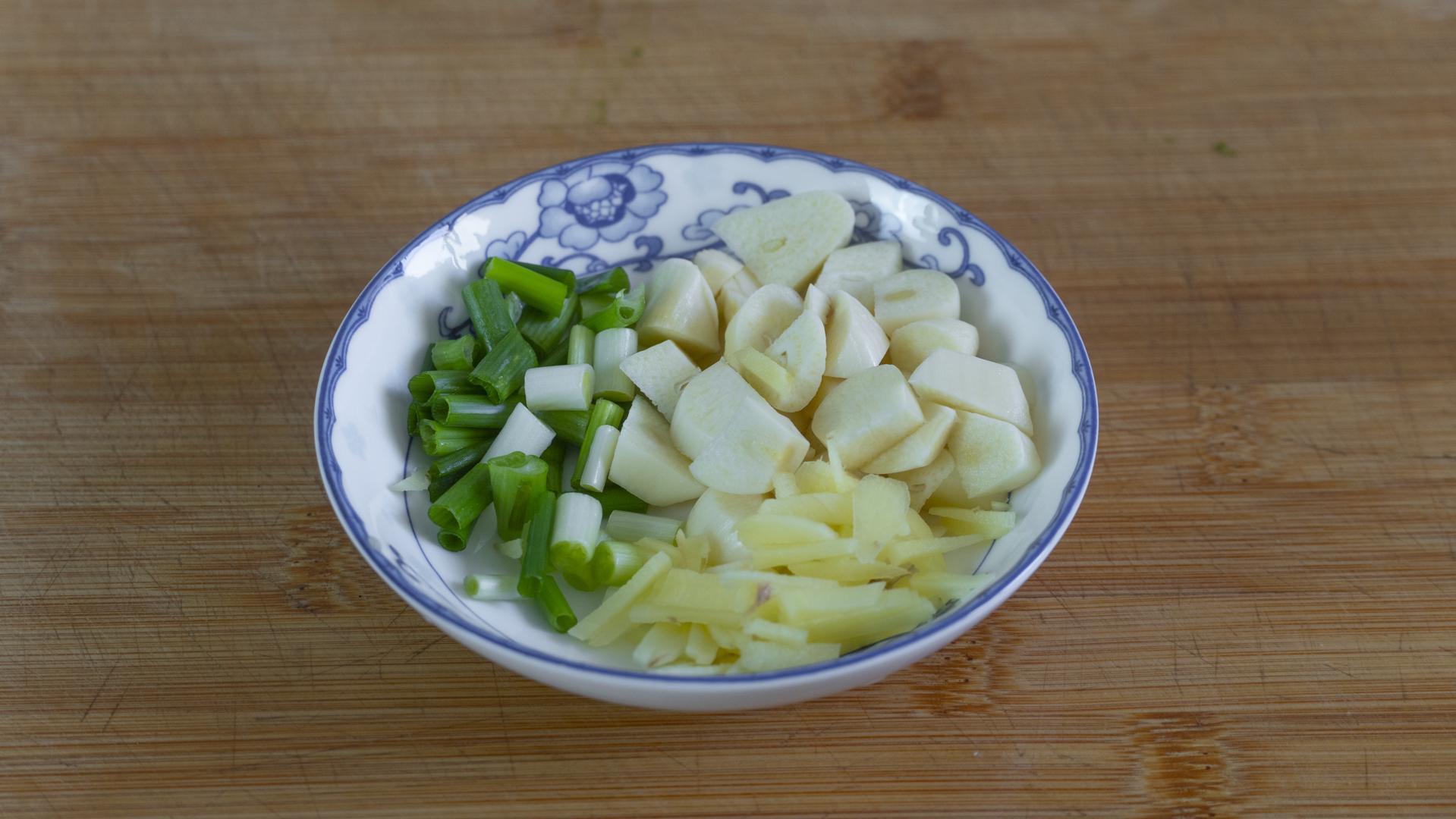 3、切點蔥薑蒜,大蒜切片,生薑切絲,小蔥切蔥花。