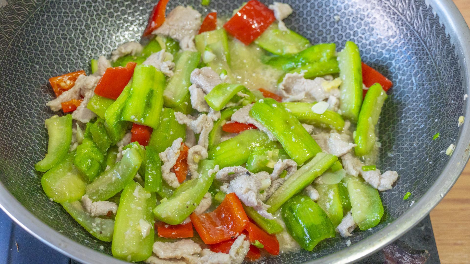 嫩滑又清爽的絲瓜滑肉就做好了。絲瓜顏色翠綠好看不發黑,肉片也超級嫩滑爽口。