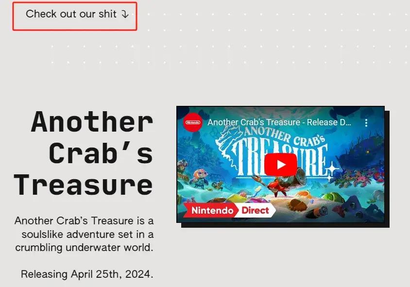 正如之前提到的,《蟹蟹尋寶奇遇》略顯殘酷的故事背景和風趣的玩法構成了一種黑色幽默,而這正是其開發商AGGRO CRAB所擅長的事——就在遊戲的PV、實機演示,甚至他們的官網頁面,都能見到他們的自嘲。