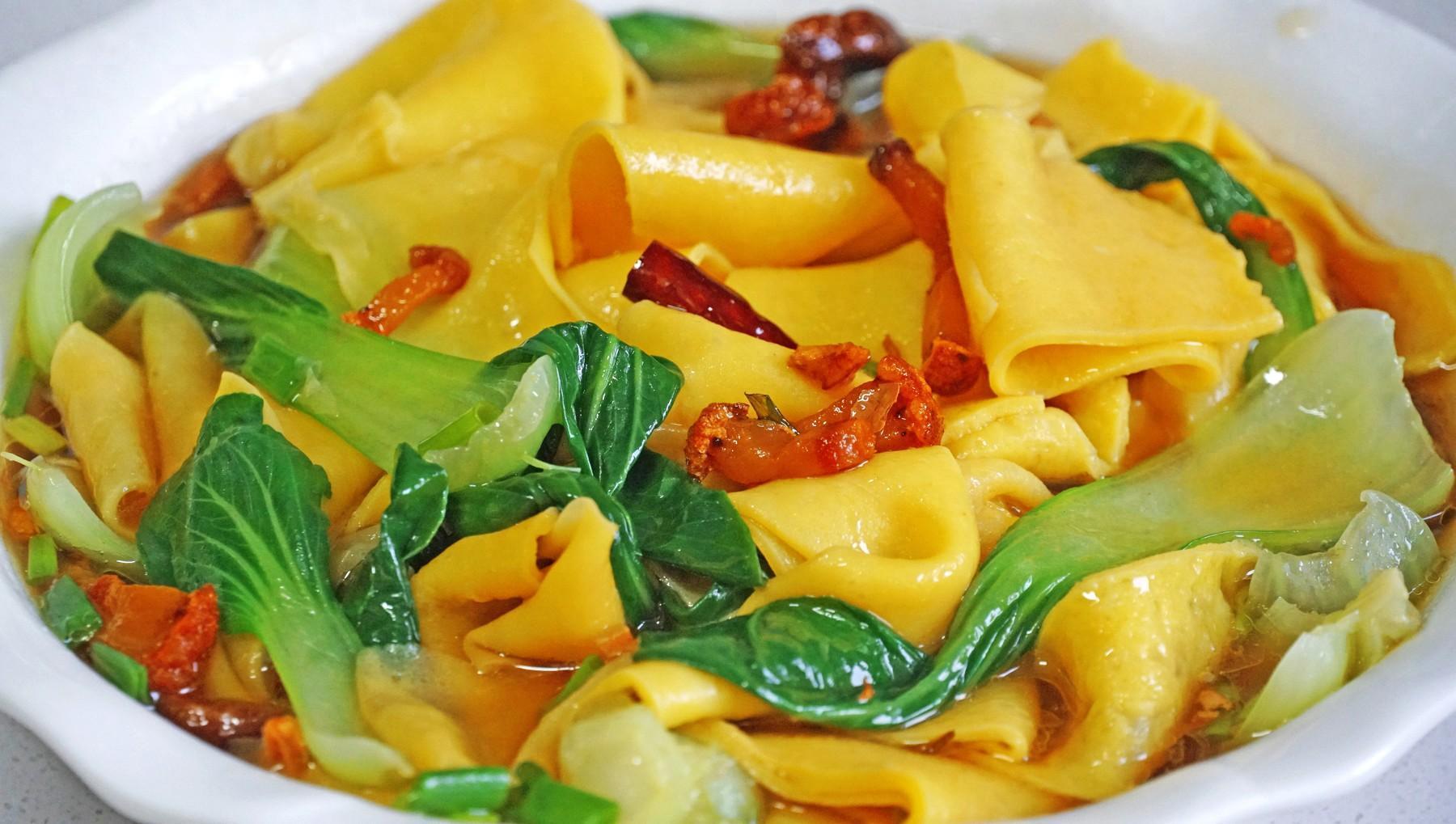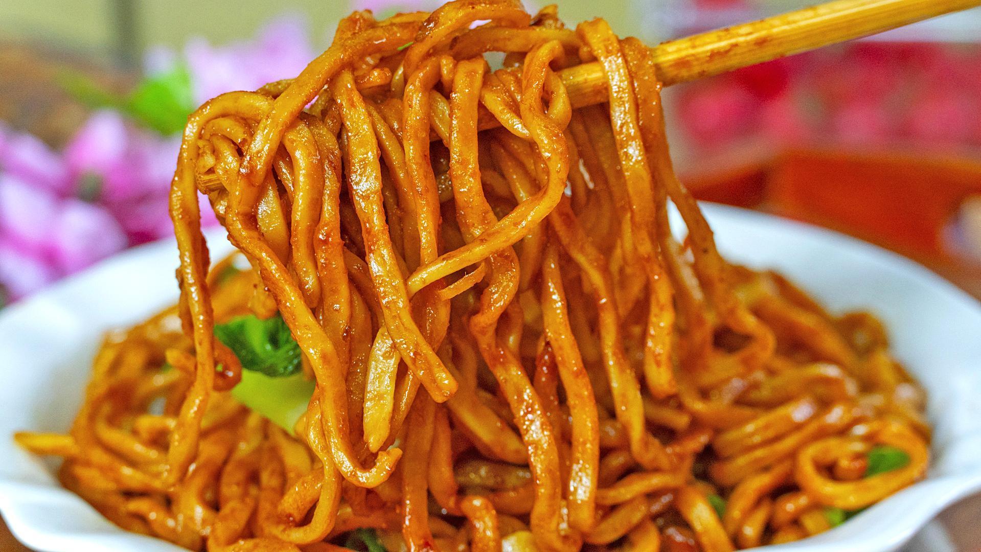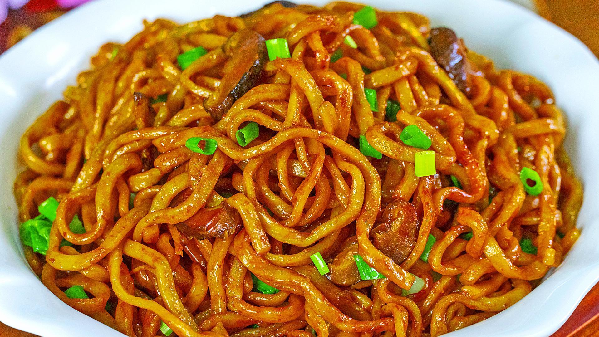 最後再撒上一把小蔥花翻拌一下,好喫的燜面就做好了。