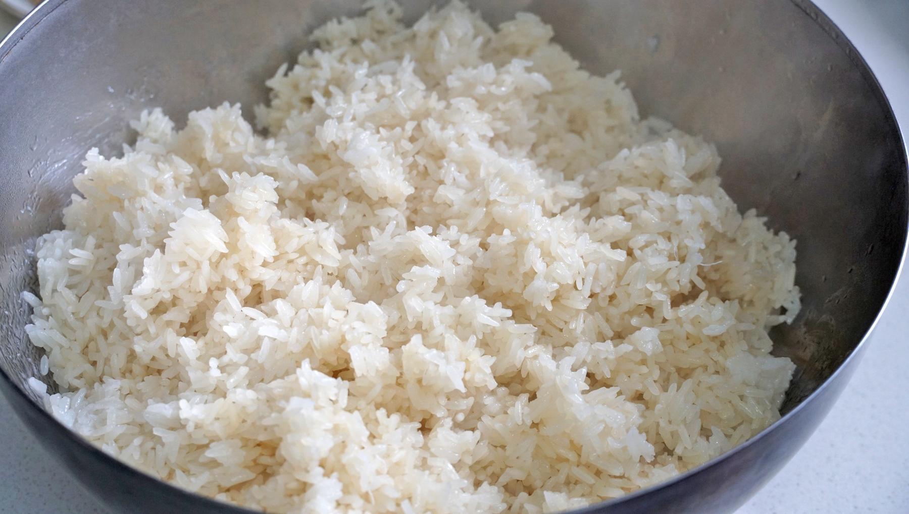 10、糯米飯也早就蒸熟了,倒出來稍微挑散。