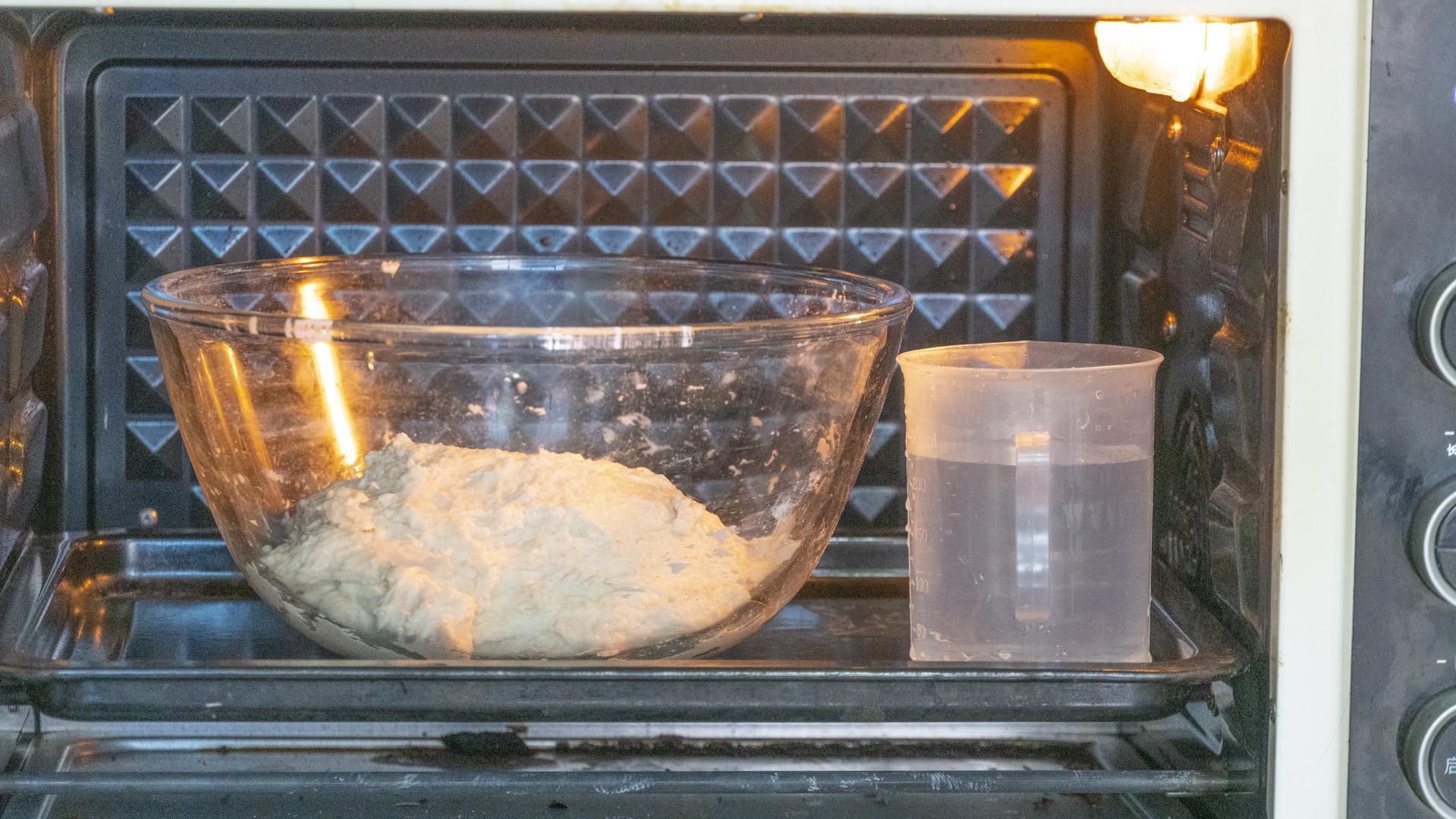 4、酵母我加了5克,然後加了400克麪粉,100克的木薯粉,攪拌到沒有面疙瘩蓋起來發酵至兩倍大。體積變大了,能看到很多小氣孔就是發好了。