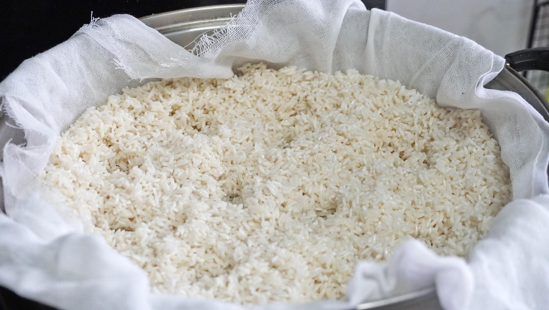 2、糯米瀝乾水分放入蒸鍋中,水開計時大火蒸個40分鐘。