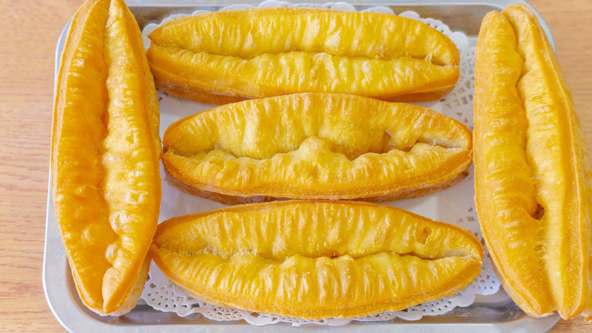 6、我們的油條就炸好了,個個蓬鬆喧軟、外酥裏嫩,切開裏面都是空心的,趁熱喫非常的酥脆,放涼了也不會變硬。