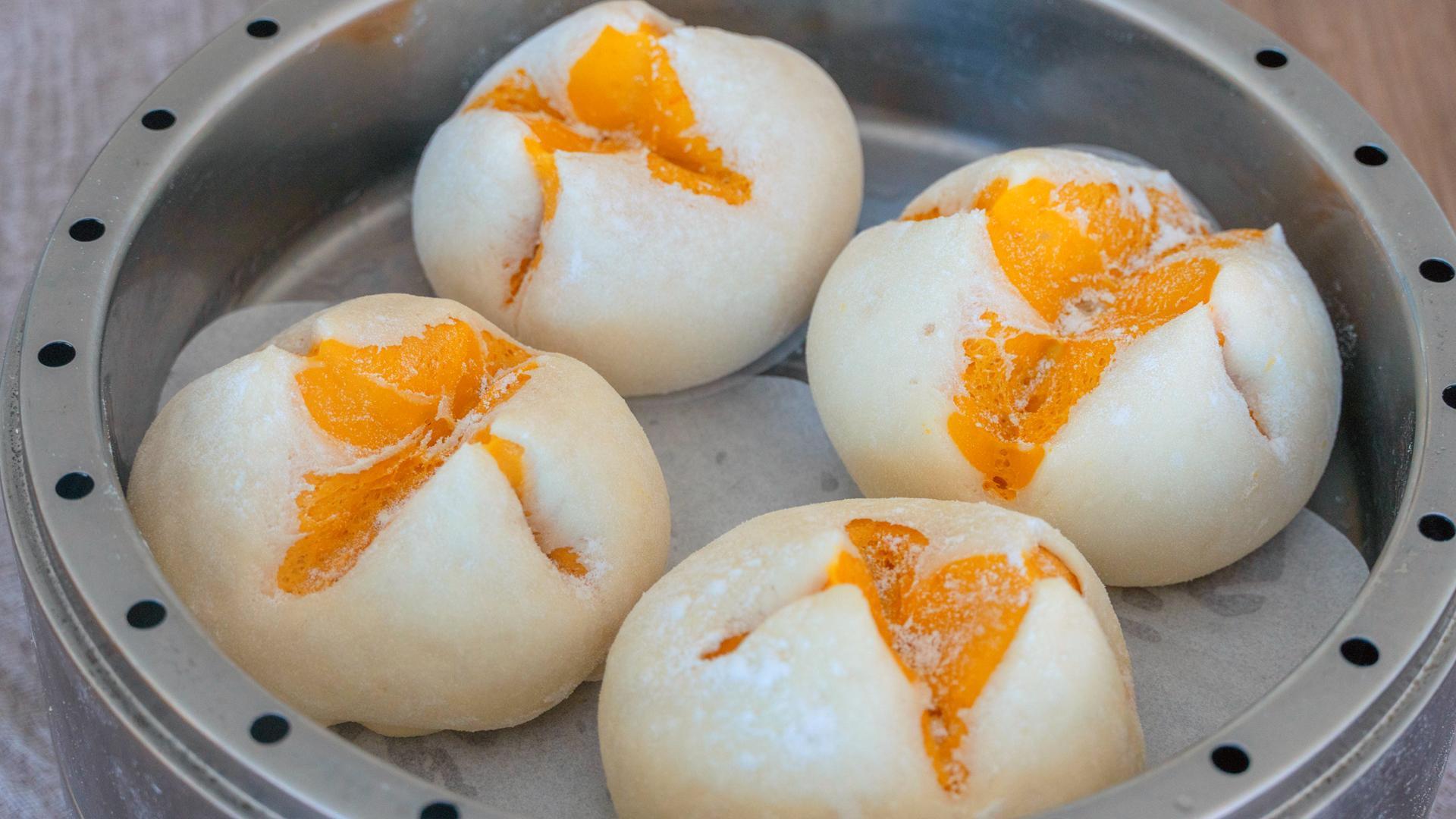 6、全部做好後用剪刀剪出十字口,這是最簡單的開花方法了。蓋上保鮮膜醒發30分鐘,體積變大變輕後放入蒸鍋中,冷水上鍋,水開上汽後大火蒸15分鐘,關火再燜5分鐘。