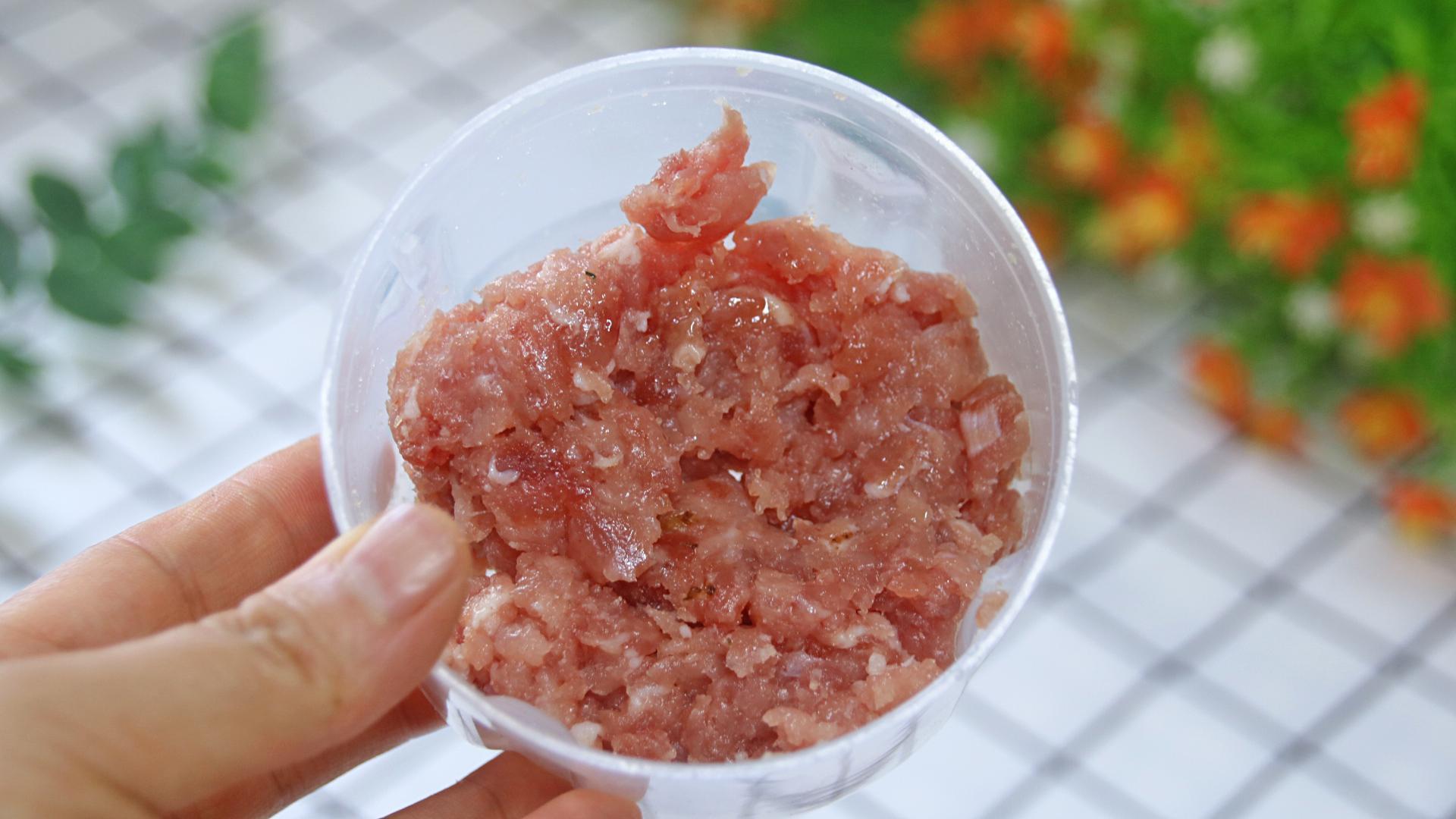 2、新鮮瘦豬肉打成肉沫;