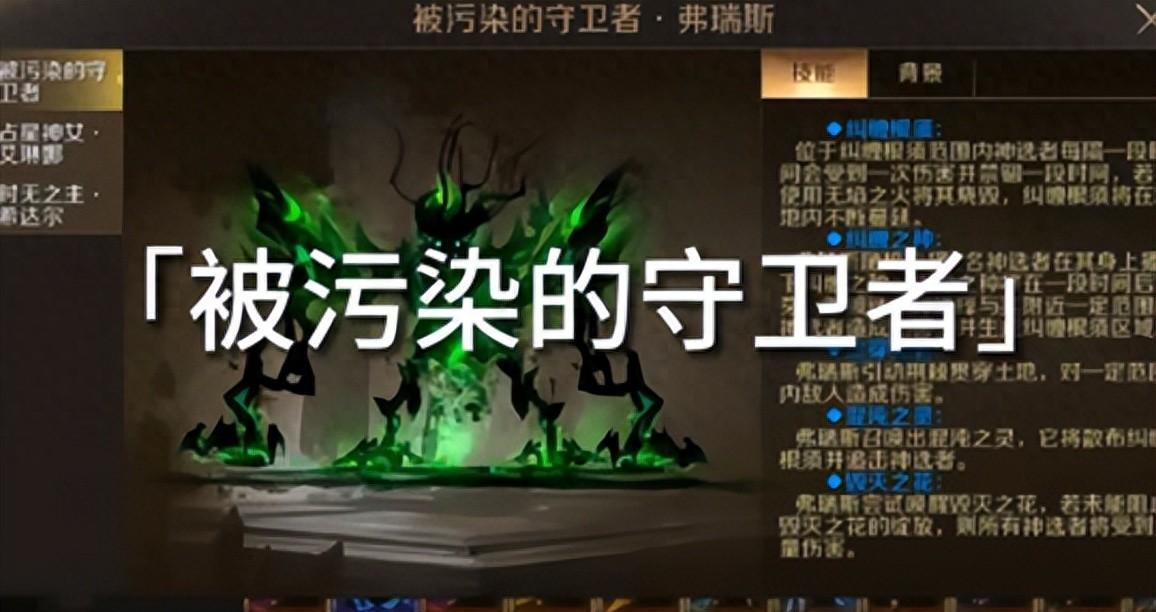 被污染的守衛者是“未來與往昔之森”副本的第一位BOSS。從名字中我們可以略知一二,這是一個曾經守護森林的存在,但因受到某種污染而變異。它的技能機制獨特,一般情況下是需要玩家們細緻觀察並制定相應的戰術,來慢慢摸清楚它的套路,再來通關的,不過今天筆者就把這些祕密機制全部告訴大家吧。