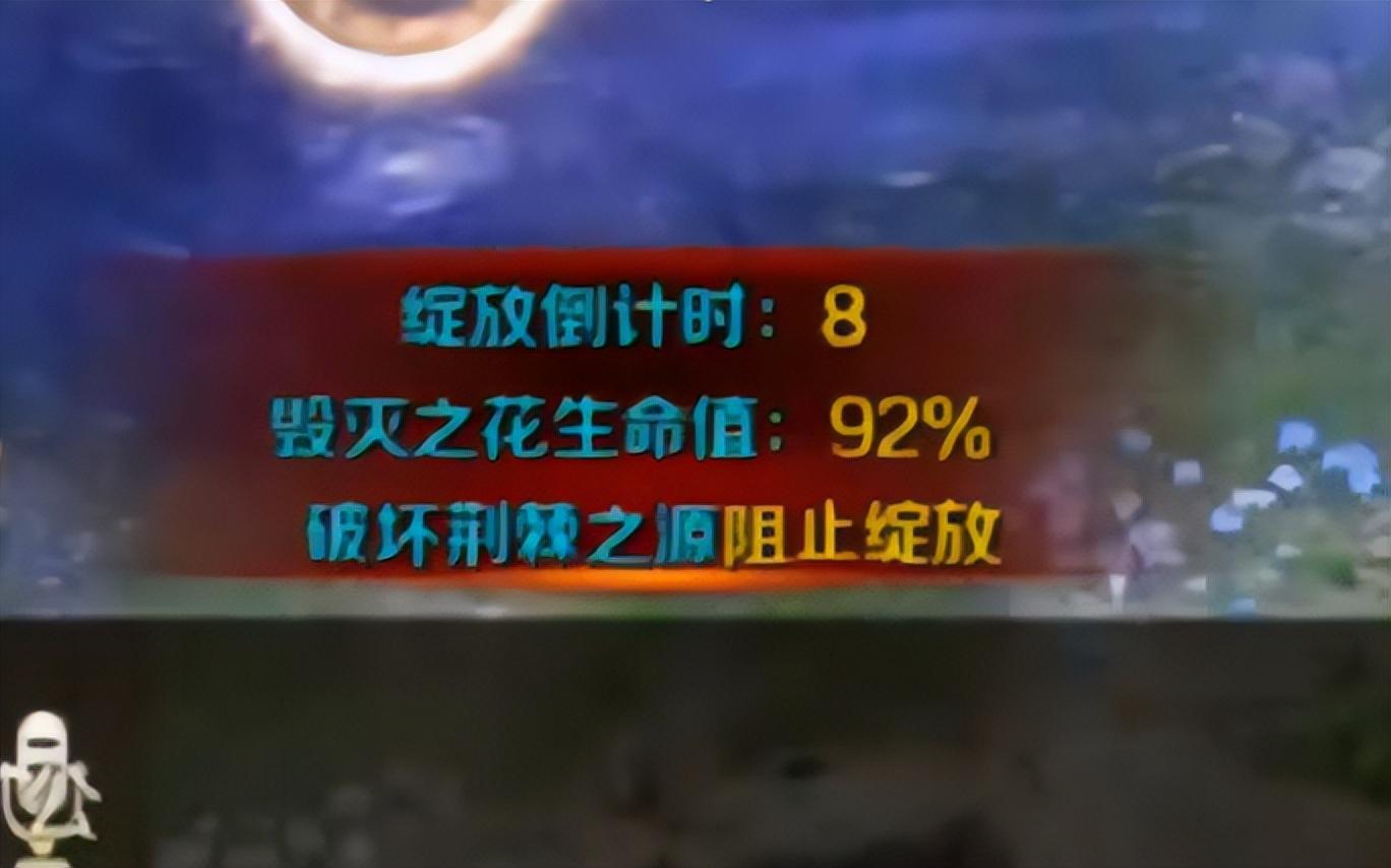 應對策略:這是此BOSS最爲關鍵的技能,也是容易導致團滅的技能。當BOSS釋放“毀滅之花”時,全體成員必須立刻集中火力攻擊BOSS,爭取在倒計時結束前擊敗它。否則,當倒計時歸零,整個團隊可能會因爲受到鉅額傷害而團滅。