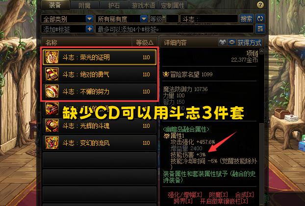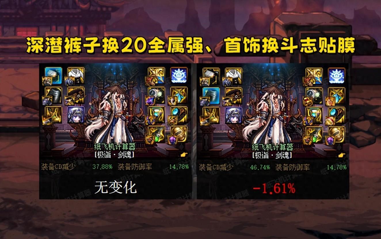 第一,如果你走的是“神劍流”,可以把深潛褲子的75冷卻縮減換成20全屬強,然後把首飾貼膜換成“鬥志3件套”,這叫用單技能虧損換來整體提升!