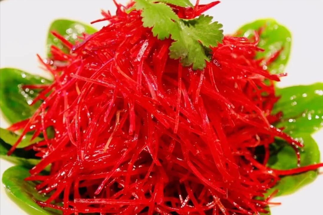 1、甜菜根洗淨擦絲,越細越有味兒。