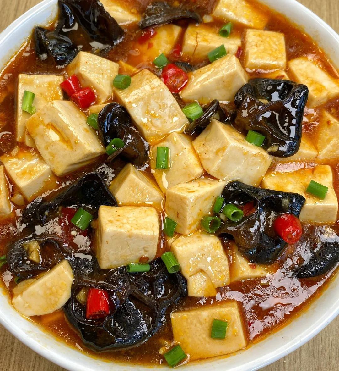1、木耳1小把,加水提前泡軟;嫩豆腐一塊,切成小塊兒備用。
