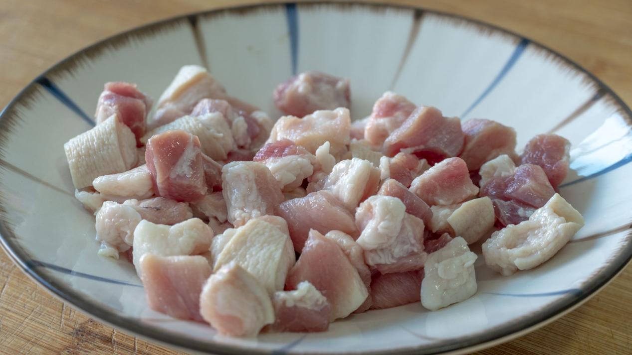 1、土豆2個去皮,切成小丁,切好後泡在水裏,防止氧化,還能泡掉多餘的澱粉,讓口感更爽口。