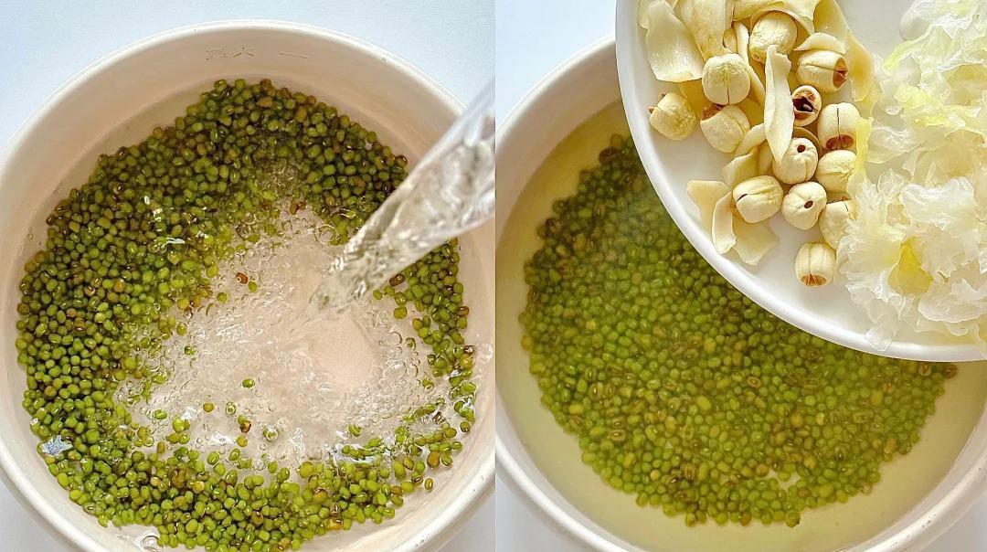 1、綠豆100克,洗淨後加水提前泡一夜。