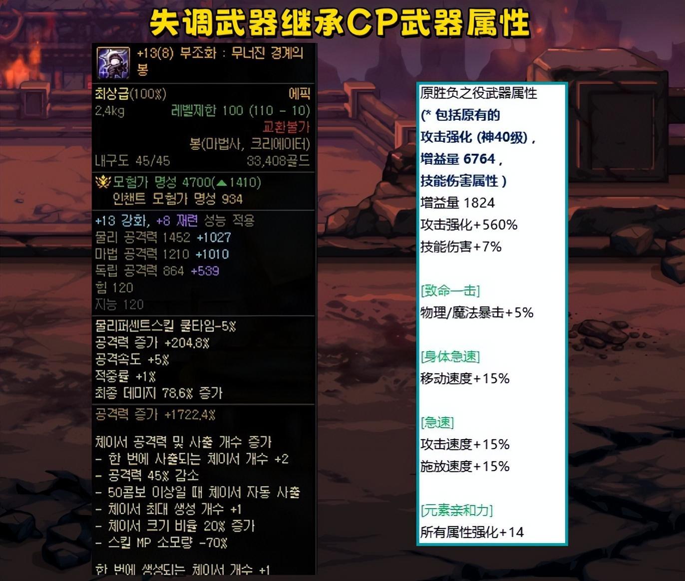 【基礎屬性】攻強+204.8%,技攻+78.6%,繼承CP武器詞條!