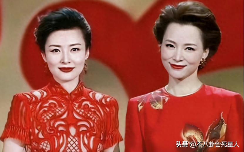當時董卿戴着眼鏡,素顏出鏡,看起來前額頂都有點禿了,而一旁的周濤卻依舊狀態不錯,同樣素顏出鏡的她和董卿站在一起,甚至看上去比對方更顯年輕。