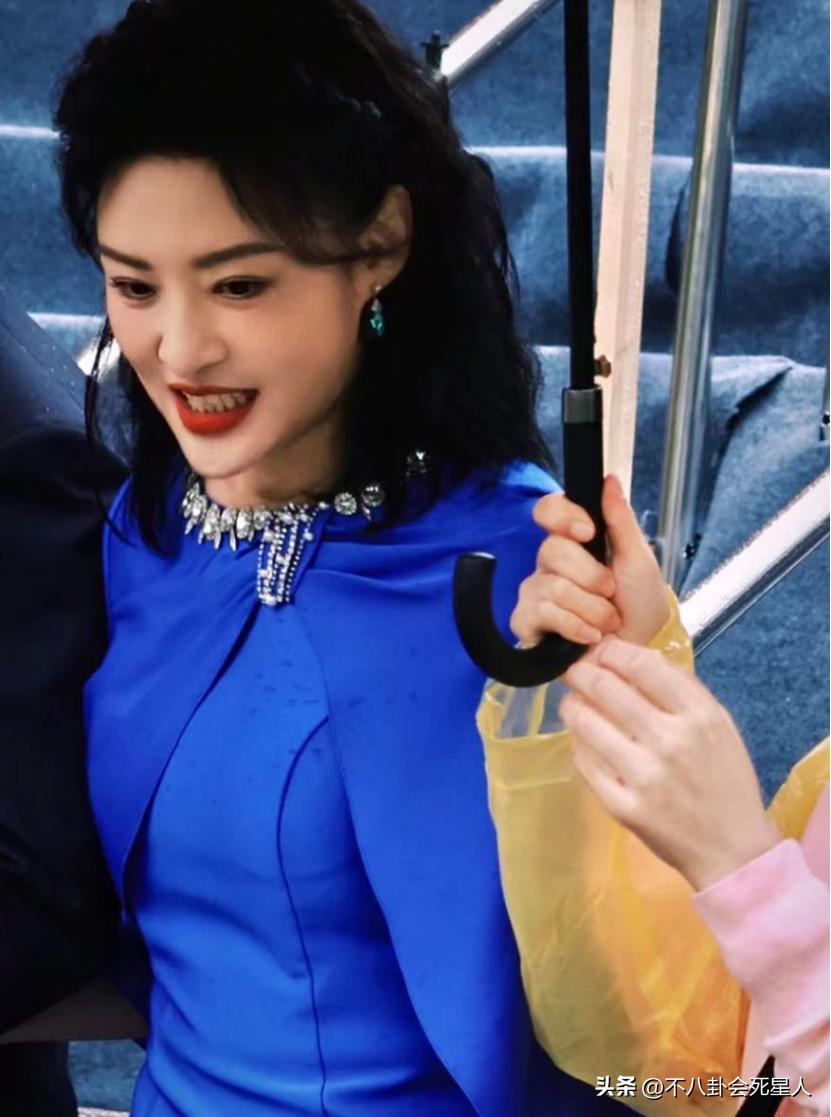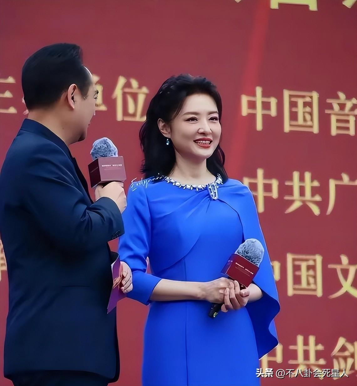 近日,56歲的周濤擔任某現場活動的主持人,她以一襲藍色長裙亮相,一頭小卷發盡顯優雅氣質。