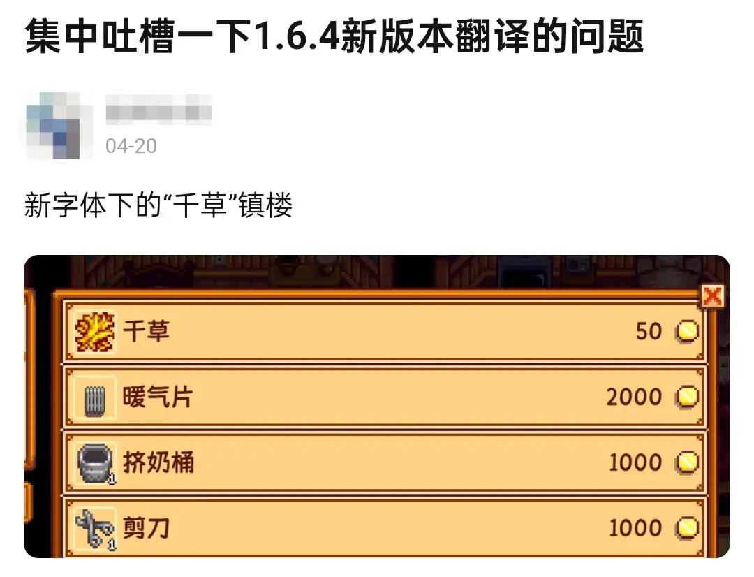 且由於新字體造型較爲圓潤,一些玩家覺得其影響了可讀性,比如把“乾草”的“幹”混淆成“千”。當然,直言不諱嫌棄新字體醜的玩家也不少。
