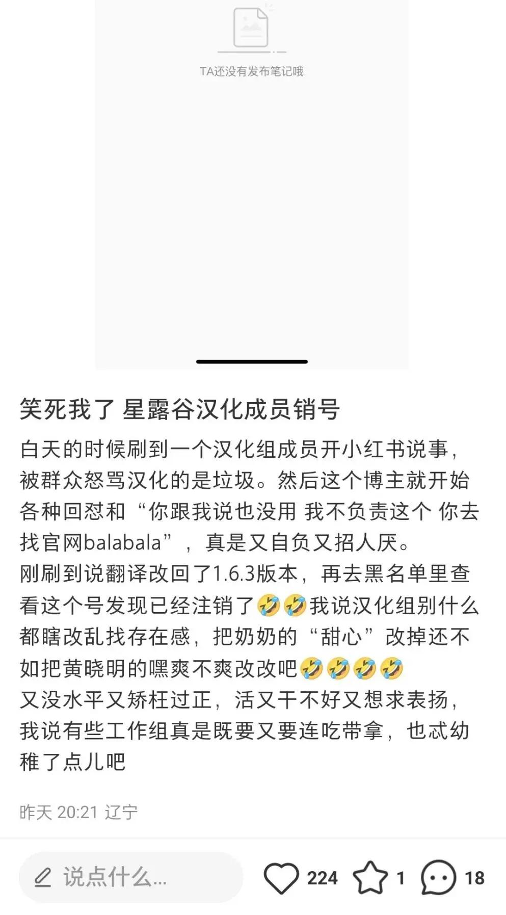 另一邊的VitaminA也註銷了小紅書帳戶,一些信息顯示,這位其實並非直接參與漢化的成員,只是代爲做了一些社區工作,卻拉了最多的仇恨。