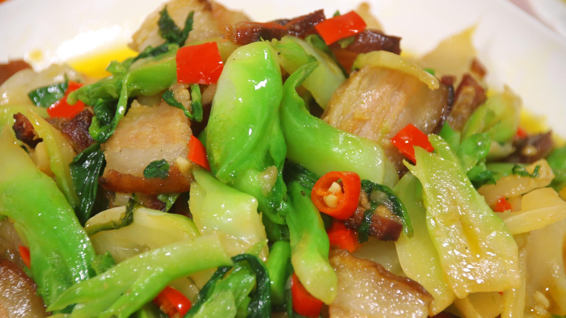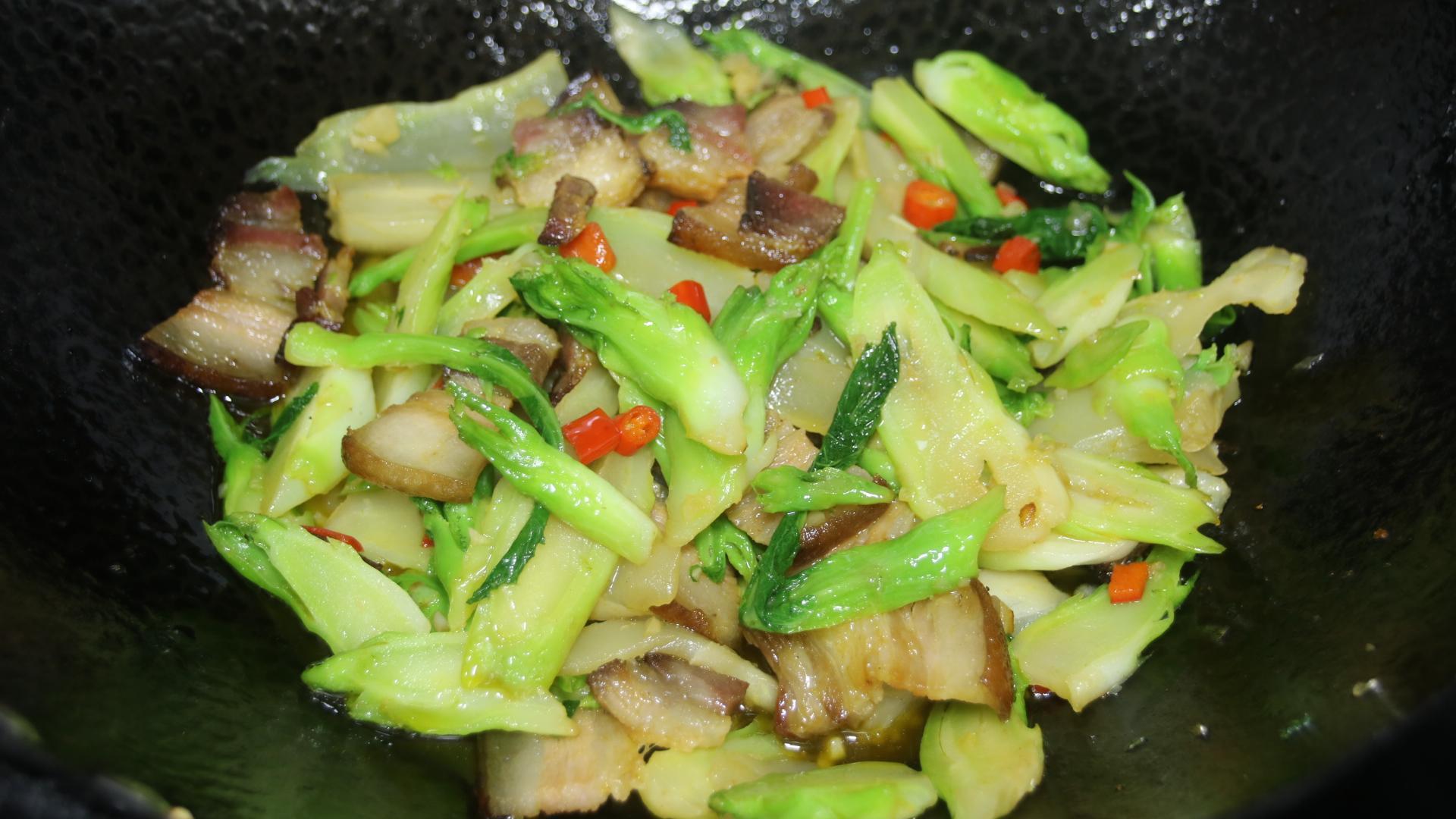 2、這塊恩施臘肉很正宗的,提前給它煮了一下,也切成片;