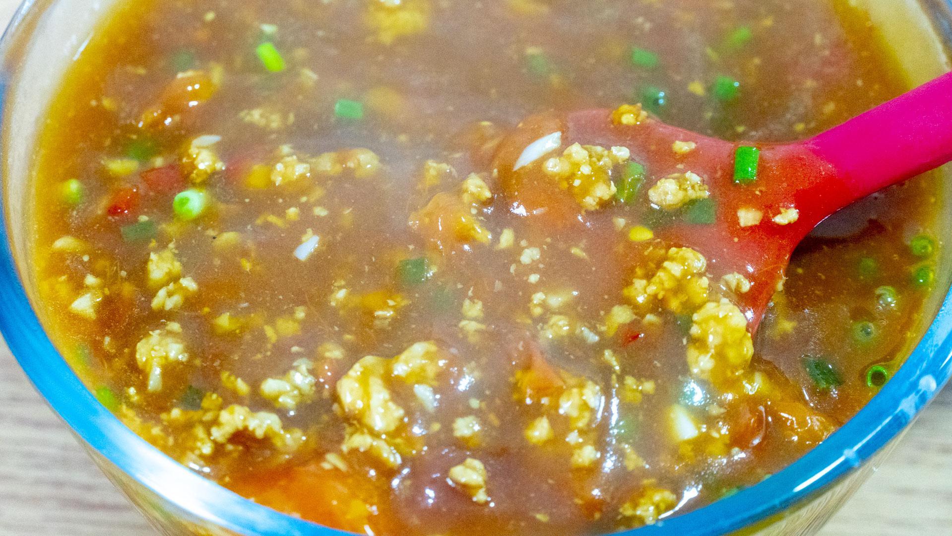 4、翻拌均勻後再來一碗澱粉水勾芡,炒到湯汁變濃稠就可以啦,倒出來後再撒一點小蔥花,這個用來拌麪條真的太香了。