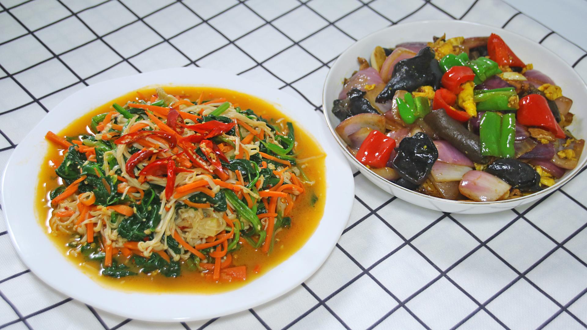 今天的午餐呢就兩個菜,一熱一冷、一葷一素,營養齊全,主打一個下飯!