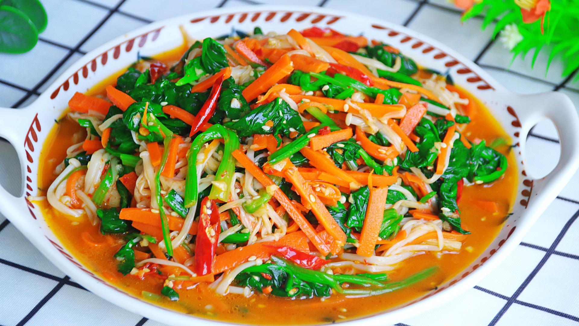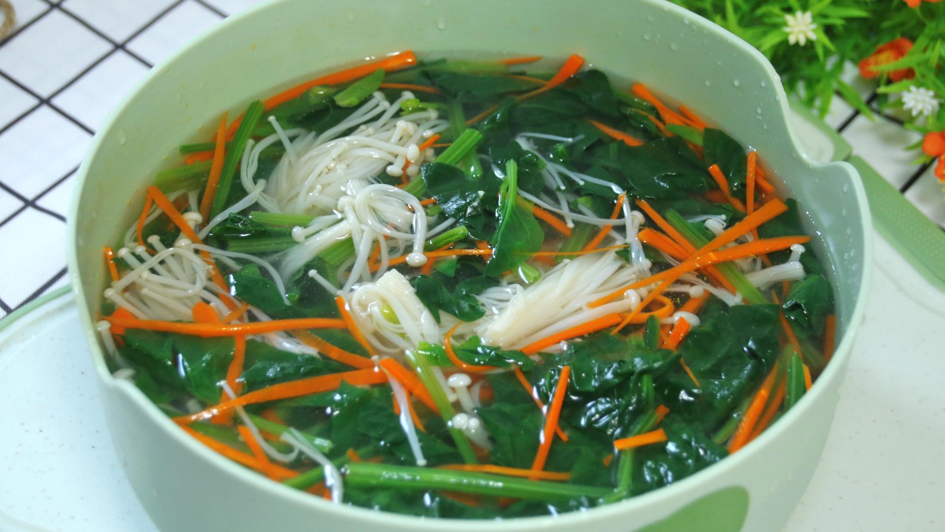 這樣做的菠菜拌金針菇,下酒又下飯,喫起來酸辣可口,清爽解膩,關鍵還不怕胖,天熱沒胃口可以安排起來哦;