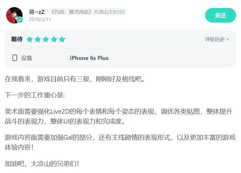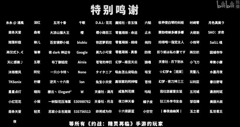 2020年9月30日,大涼山投資製作的動畫《狂三外傳》上線,動畫帶動了手遊流水的提升,大涼山也特意把手遊玩家們的名字寫進了動畫裏的“特別鳴謝”一欄,“手遊玩家都是《約戰》動畫的投資人”這件事也像是一種玩家和廠商之間互相尊重的雙向奔赴。