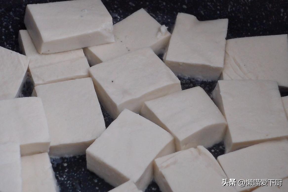 1、準備2塊豆腐(不要嫩豆腐),切成方塊狀;