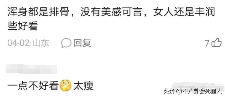 難怪網友說她太瘦了不好看,說她現在渾身都是排骨,沒有美感可言了。