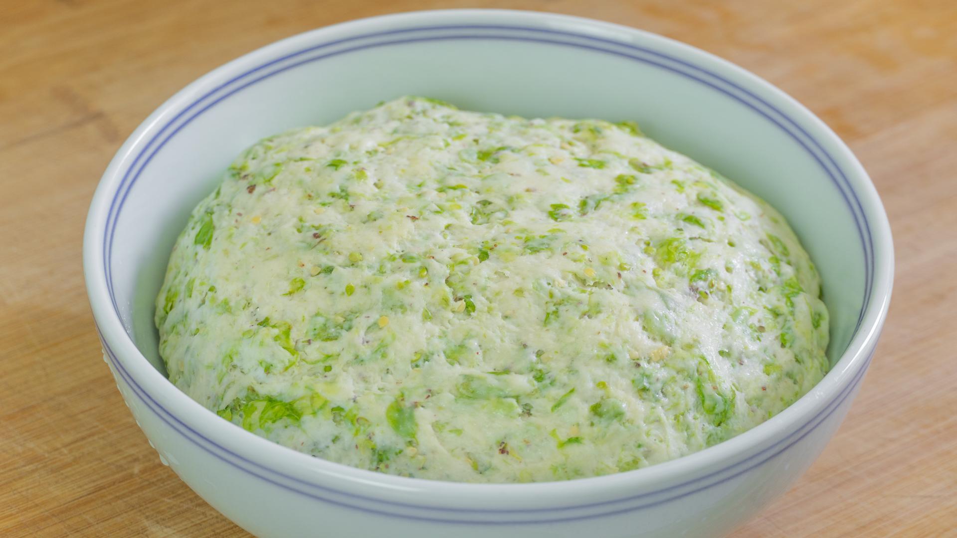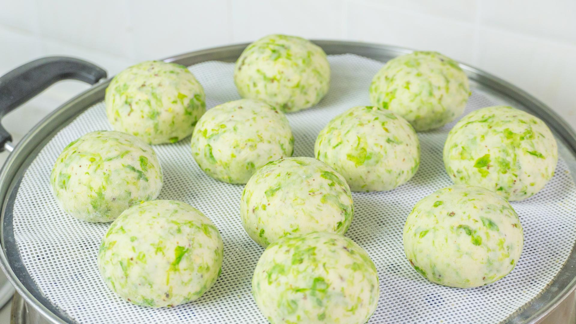 6、繼續揉一揉,然後收圓,整理成饅頭的形狀就可以了,我們的榆錢饅頭生胚就做好了。