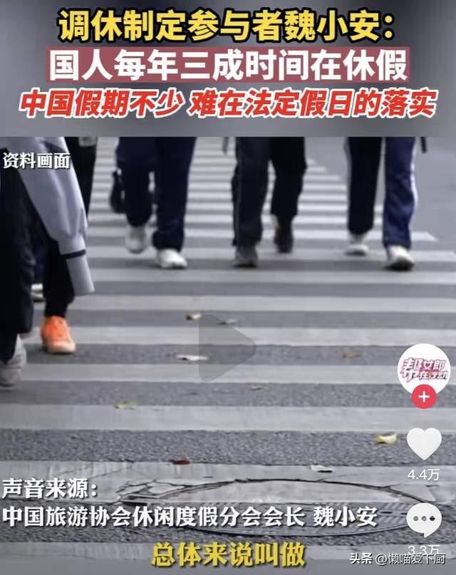 就在去年的時候,調休政策制定參與者魏小安專家,曾針對當前的假期制度,表達過自己的看法。他認爲,國人每年有三成時間在休假,假日的天數並不少,欠缺的是在法定假日的落實。