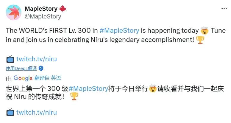 像往常一樣,Niru開啓了直播,準備正式衝擊300級。隨着經驗條一點點往上漲,《冒險島》官方也提前開好了香檳,不僅發佈了全服公告,甚至兩位官方社區賬號都蹲守到了Niru的直播間,就等着在升滿300級的那一刻爲他送上祝福。