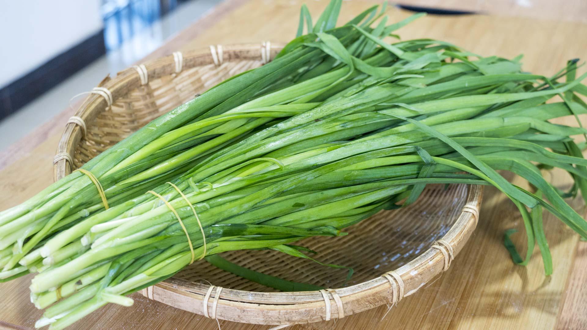 2、韭菜清洗乾淨控一控水分。