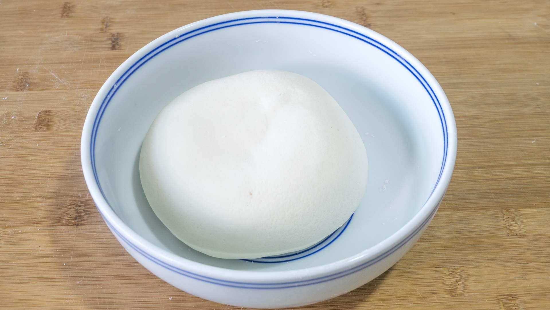 1、500克中筋麪粉、3克鹽、1克酵母,拌勻後先加130克涼水,接着再加120克開水,揉光滑了蓋上保鮮膜醒面1個小時;