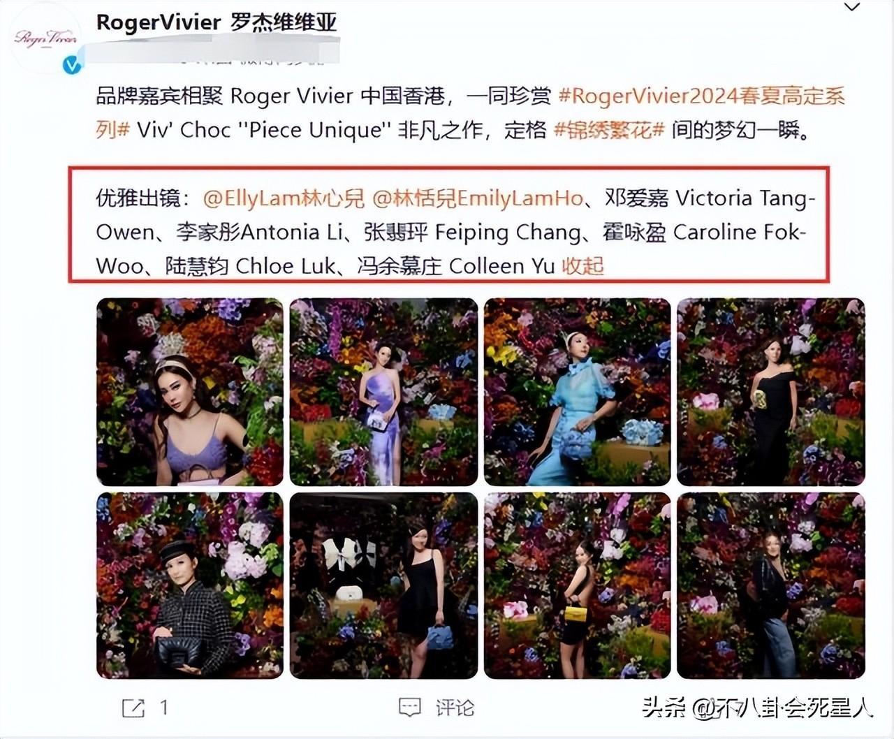 據悉,當天晚宴的選址頗有亮點,選在了香港最爲豪華的酒店之一舉行,並且現場佈置十分豪華,以“繁花”爲主題,整個場地打造得美輪美奐。除了精心佈置的晚宴現場外,最吸引人關注的就是港圈名媛大聚會,官方還特地提到了出鏡的豪門名媛們。