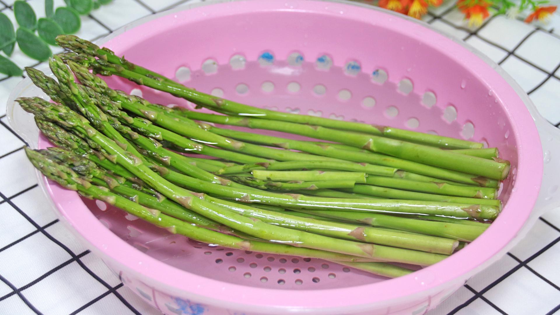 2、蘆筍加鹽焯水不超過1分鐘,焯完後泡涼水片刻之後再炒,這麼做可以去除草酸,同時減少對蘆筍營養物質的破壞,和保持口感上的脆爽。